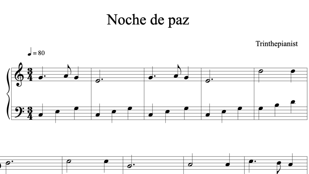 Partitura de el arreglo (Muy fácil) de Trinthepianist del villancico popular "Noche de paz" para piano.